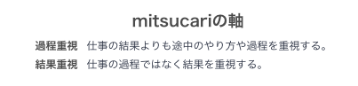 今回の記事では、ミツカリの「過程重視・結果重視」に焦点を当てます。自分がこの軸の上でどちら寄りなのか、またはどちらもバランスが取れているかを理解する事が、少しでも職業選択や対人関係に役立つ事ができれば幸いです。
